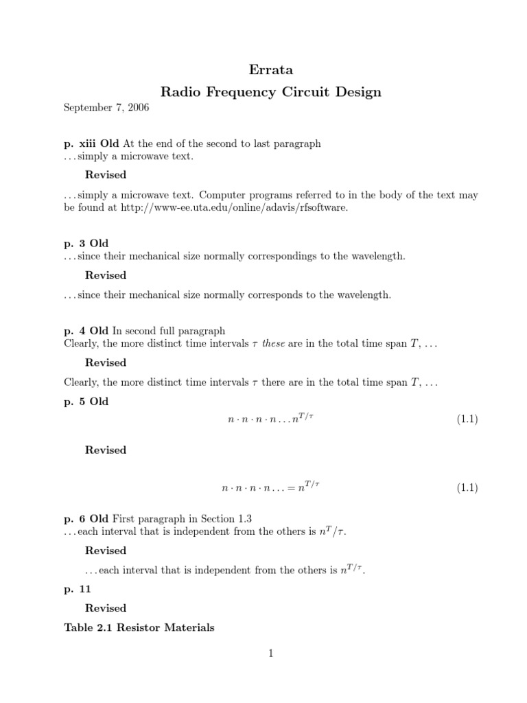 Errata Radio Frequency Circuit Design PDF Field Effect Transistor Mosfet